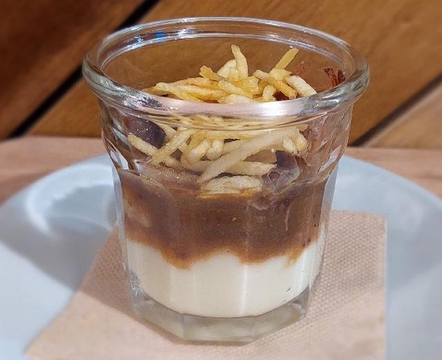 FOIE CON MANZANA : 5,50 €. (Se puede preparar sin pan, con lo cual sería libre de alérgenos)